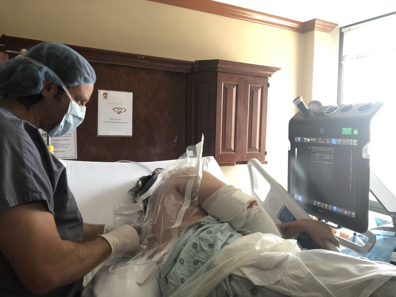 Director of Acute Pain Service Regional One Health, Dr Jerry Jones (LinkedIn) used an ultrasound to place Peripheral Nerve Catheters in just the right locations to block the pain I was feeling in my right ribs and right shoulder. This process was done while I was in my hospital bed Sunday afternoon. I was able to watch the screen while he located and inserted the catheters.
