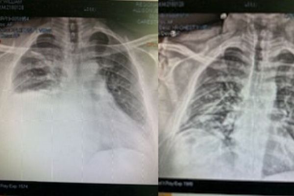 - Pneumothorax – a collapsed right lung